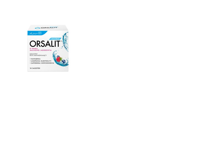 • ORSALIT nutris smaku malinowo-jagodowym jest żywnością specjalnego przeznaczenia medycznego, przeznaczonym do postępowania dietetycznego w stanach odwodnienia organizmu, szczególnie podczas biegunki lub wymiotów oraz w sytuacjach, w których występuje ryzy